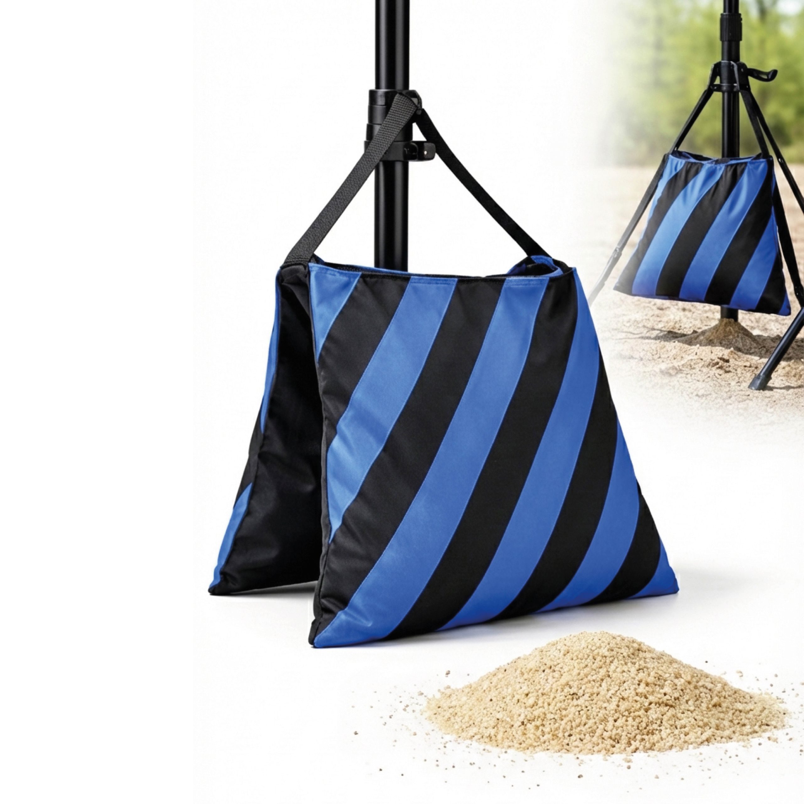 Ideal para soportes de luces, trípodes, y bases de altavoces, esta bolsa de arena es un accesorio esencial para lograr mayor estabilidad y confianza en cualquier montaje técnico. (No incluye arena u otro material de relleno).