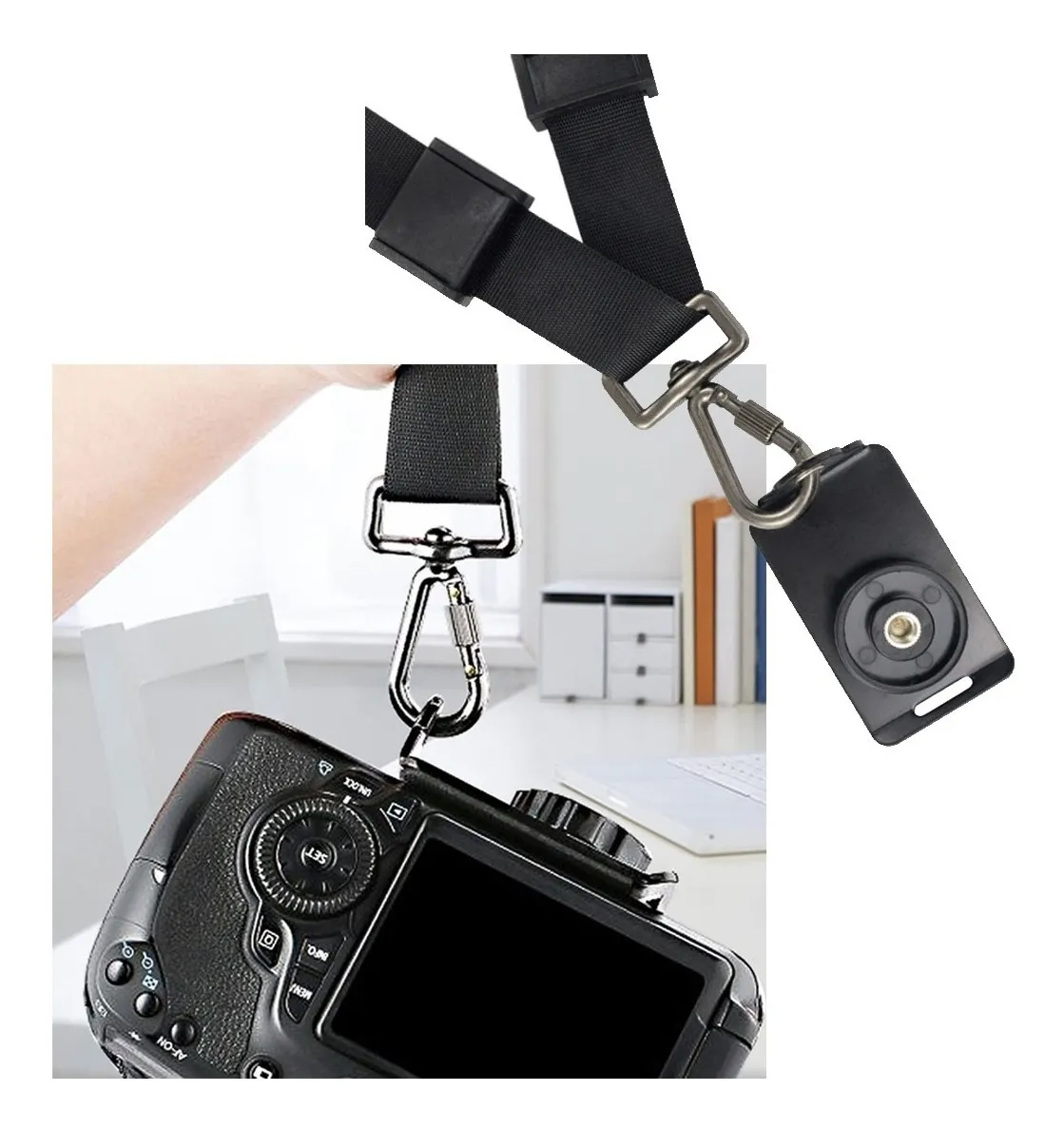 Funciona perfectamente con todas las cámaras que tengan entrada de tornillo estándar de 1/4″, incluyendo marcas como Canon, Nikon, Sony, Fujifilm, Panasonic, Pentax, Olympus, entre otras. No importa si usas una cámara full-frame, APS-C o incluso compacta: la correa se adapta a tus necesidades.