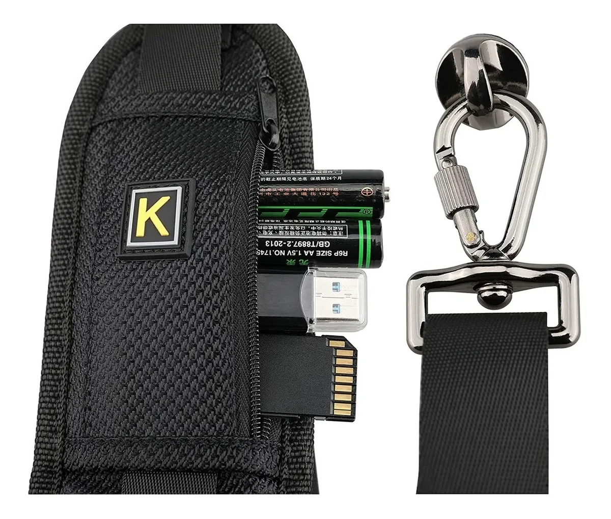 Fabricada en nylon balístico de alta resistencia y piezas metálicas reforzadas, esta correa está hecha para resistir el desgaste del uso diario, el roce constante y las exigencias del trabajo profesional. Soporta el peso de equipos pesados sin deformarse ni perder su forma.