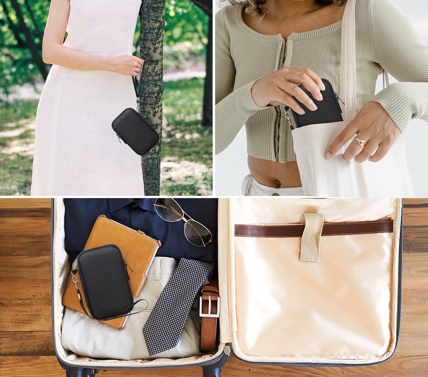 Gracias a su diseño compacto y liviano, esta funda cabe fácilmente en mochilas, bolsos o maletas sin ocupar mucho espacio. También incluye una correa de muñeca desmontable para que puedas llevarla cómodamente en la mano durante salidas rápidas o sesiones de grabación.