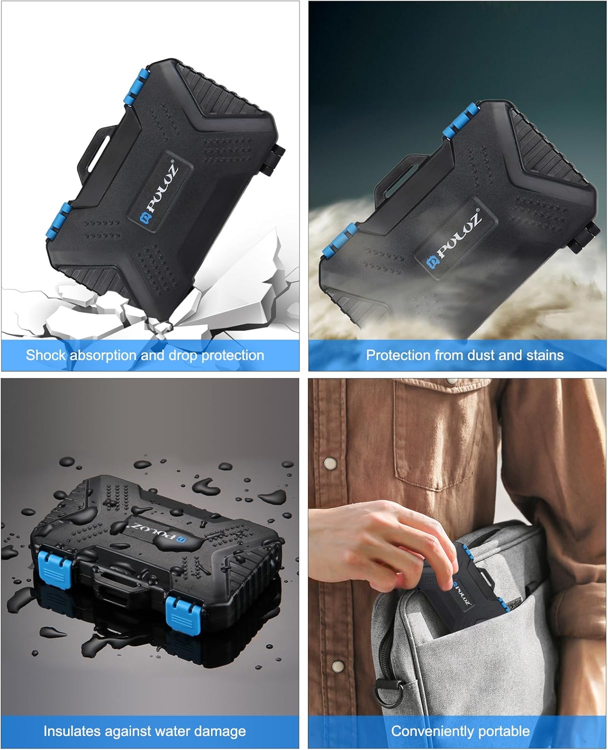 Ligera y compacta, esta caja cabe fácilmente en mochilas, bolsos o incluso en el bolsillo de una chaqueta. Es perfecta para fotógrafos en exteriores, viajeros o cualquier persona que necesite movilidad sin sacrificar protección.