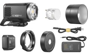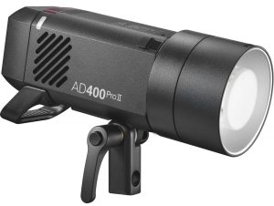El AD400Pro II ofrece 400 W con 10 pasos de salida, que van de 1/1 a 1/512 en incrementos de 0,1. Su batería extraíble proporciona hasta 460 destellos a máxima potencia, una cifra superior a la del AD400Pro anterior. La versión II también incorpora un modo HSS que funciona con velocidades de obturación de hasta 1/8000 s, lo que permite un práctico modo de congelación con duraciones de flash de 1/3470 a 1/27770 s para detener la acción. Fuera del modo de congelación, el AD400Pro II ofrece duraciones de flash normales de 1/230 a 1/16120 s.