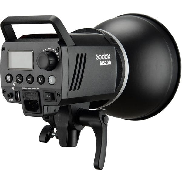 Con un número guía de 174′, el MS200 Monolight de Godoxes una fuente de flash con balance de luz diurna de 5600K que ofrece un núcleo sólido y características convenientes a un precio económico. El cabezal cuenta con un tiempo de reciclaje de 0,1 a 1,8 segundos con duraciones de flash de tan solo 1/2000 segundos. La potencia es variable de 1/32 a máxima potencia, ajustable en 50 pasos, mientras que la luz de modelado de 150 W es ajustable del 5 al 100 % para permitirle obtener una vista previa de sus efectos de iluminación. Se accede a la configuración a través de los botones del panel posterior y se muestra en la pantalla LCD fácil de leer. Las opciones de disparo incluyen cable de sincronización, botón de prueba y disparo esclavo. El MS200 tiene un sistema de radio integrado de 32 canales, lo que hace posible el control inalámbrico de funciones con la compra por separado del transmisor XT16, X2, X1 o XPro. El cabezal también tiene una función anti-pre-flash que facilita el trabajo con cámaras de apuntar y disparar y otras cámaras que emplean pre-flash. El peso ligero de la MS200 fomenta el montaje de un kit con dos o más cabezales sin tener que cargar con una maleta pesada. El MS200 tiene un accesorio de montaje frontal Bowens, lo que le permite usar modificadores Godox, así como accesorios de muchos fabricantes que usan este sistema. El cabezal tiene un soporte de soporte inclinable y funciona con alimentación de red de 100 a 120 VCA.