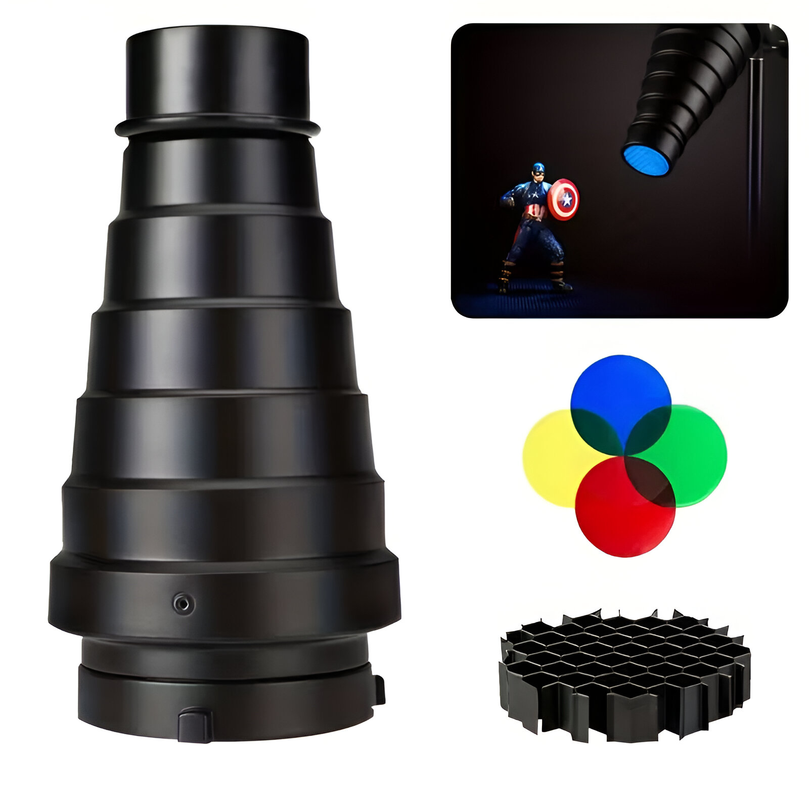 Snoot Bowens con Rejilla + 5 Filtros de Color