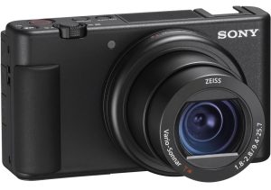 La Sony ZV-1 es una cámara compacta diseñada especialmente para creadores de contenido. Combina portabilidad, facilidad de uso y funciones profesionales como pantalla abatible, micrófono direccional, estabilización SteadyShot y lentes ZEISS para grabar videos y fotos con calidad excepcional.