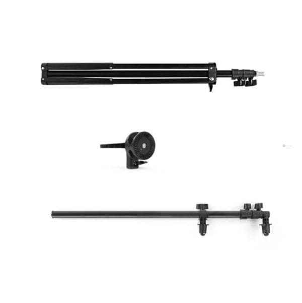 El trípode está equipado con una amortiguación por resorte y se ocupa de una bajada suave a cada uno de los niveles del trípode. Por lo que su equipo estará colocado de forma segura. La conexión 3/5″ estándar con rosca 1/4″ sirve para colocar reflectores o flashes de estudio de hasta aprox. 6 kg.