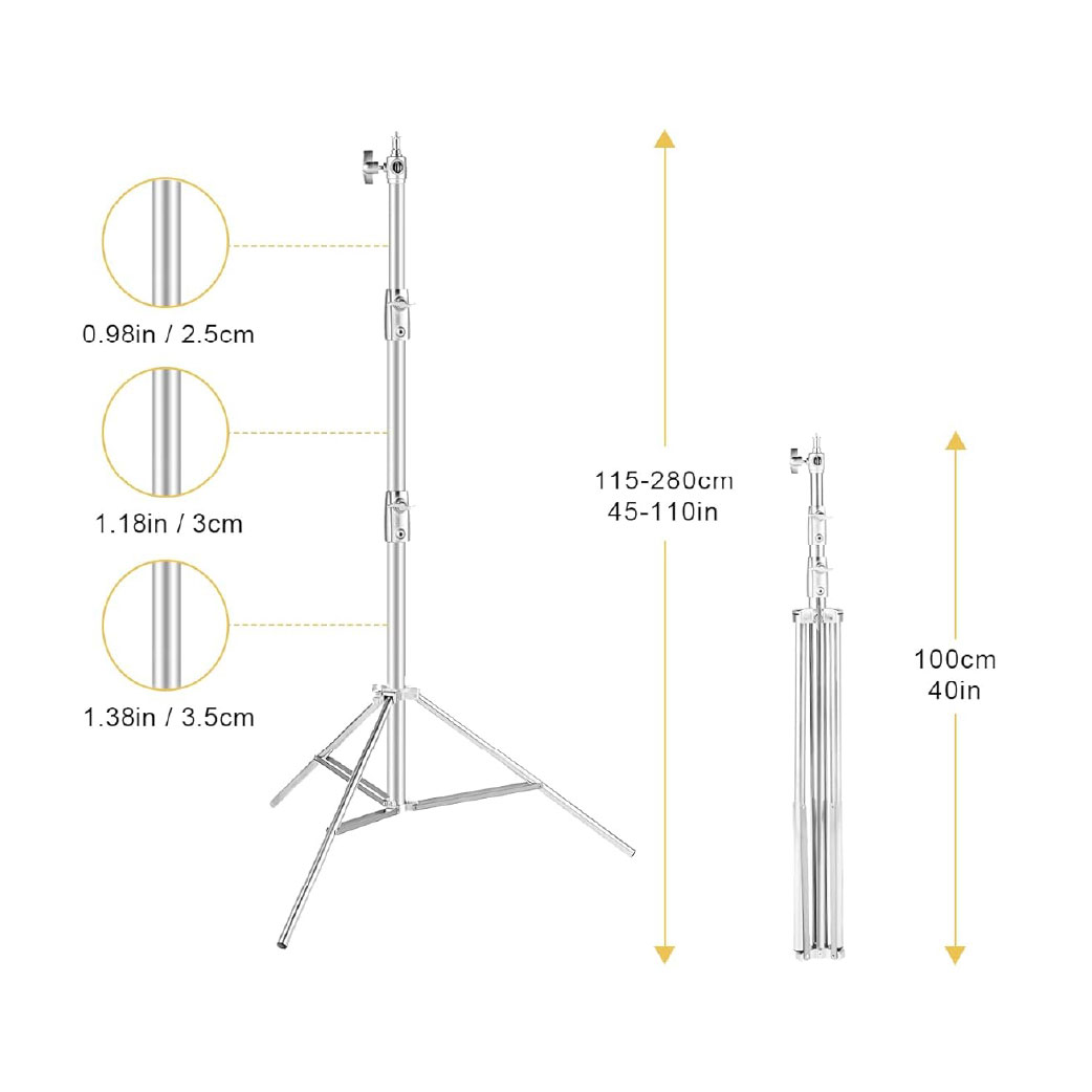 Lleva tus producciones al siguiente nivel con este resistente trípode de acero inoxidable, diseñado para brindar estabilidad, seguridad y durabilidad. Ideal para estudios fotográficos o grabaciones en exteriores, soporta una gran variedad de equipos como luces LED, flashes, softboxes, paraguas, reflectores y más. Su altura ajustable y base reforzada lo hacen perfecto tanto para fotógrafos como videógrafos exigentes.