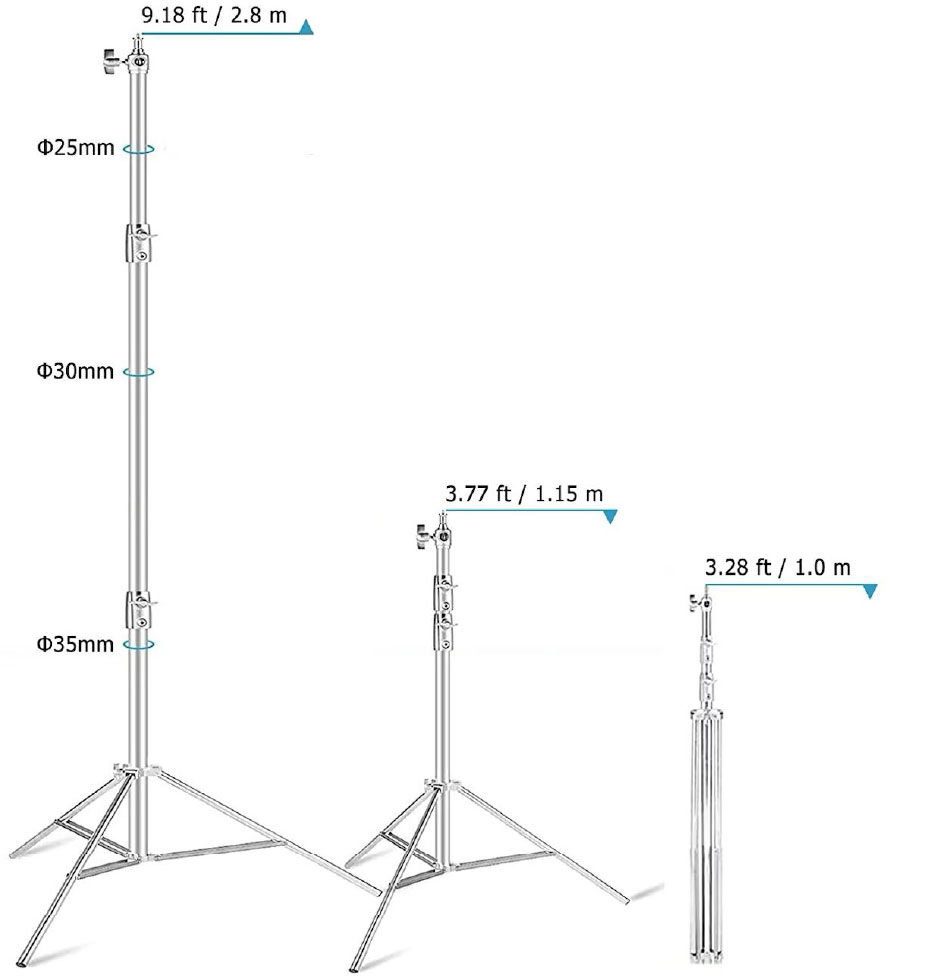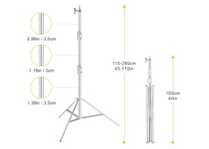 El resorte incorporado actúa como amortiguador para proteger tus equipos de golpes o caídas repentinas al ajustar la altura, extendiendo la vida útil de tus luces y accesorios.